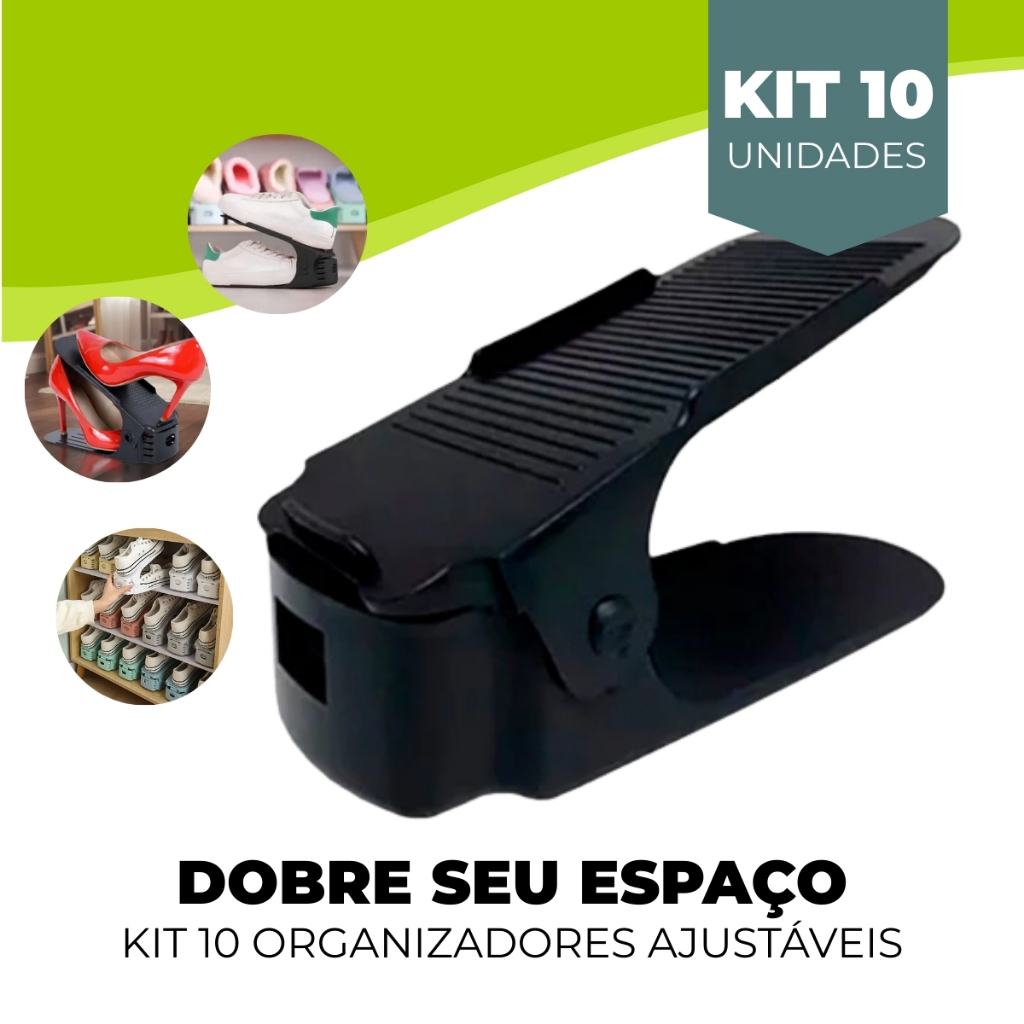 | Kit com 10 Organizadores De Sapato E Tênis - Preto Com Regulagem este produto | R$ 29,99 | — | 4.8/5 | 120 |