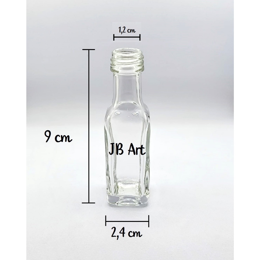 O kit contém 10 garrafinhas ou mais garrafinhas quadrada para lembrancinha - 20ml (VIDRO) Características: - Capacidade: 20ml; - Material da garrafa: vidro; - Material da tampinha: alumínio; - cor da tampinha: preta ou dourada. Medidas: - 9cm de altura - 2,4cm de lagura - 1,2 cm de largura (boca da garrafa) Dúvidas? entre em contato conosco.
