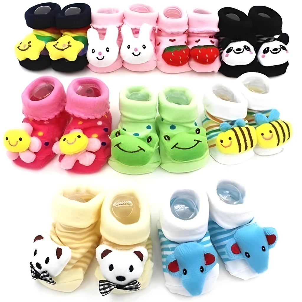 Kit com 10 Pares de Meia Bebê Infantil Menino e Menina com Bichinhos e Chocalho Sapatinhos