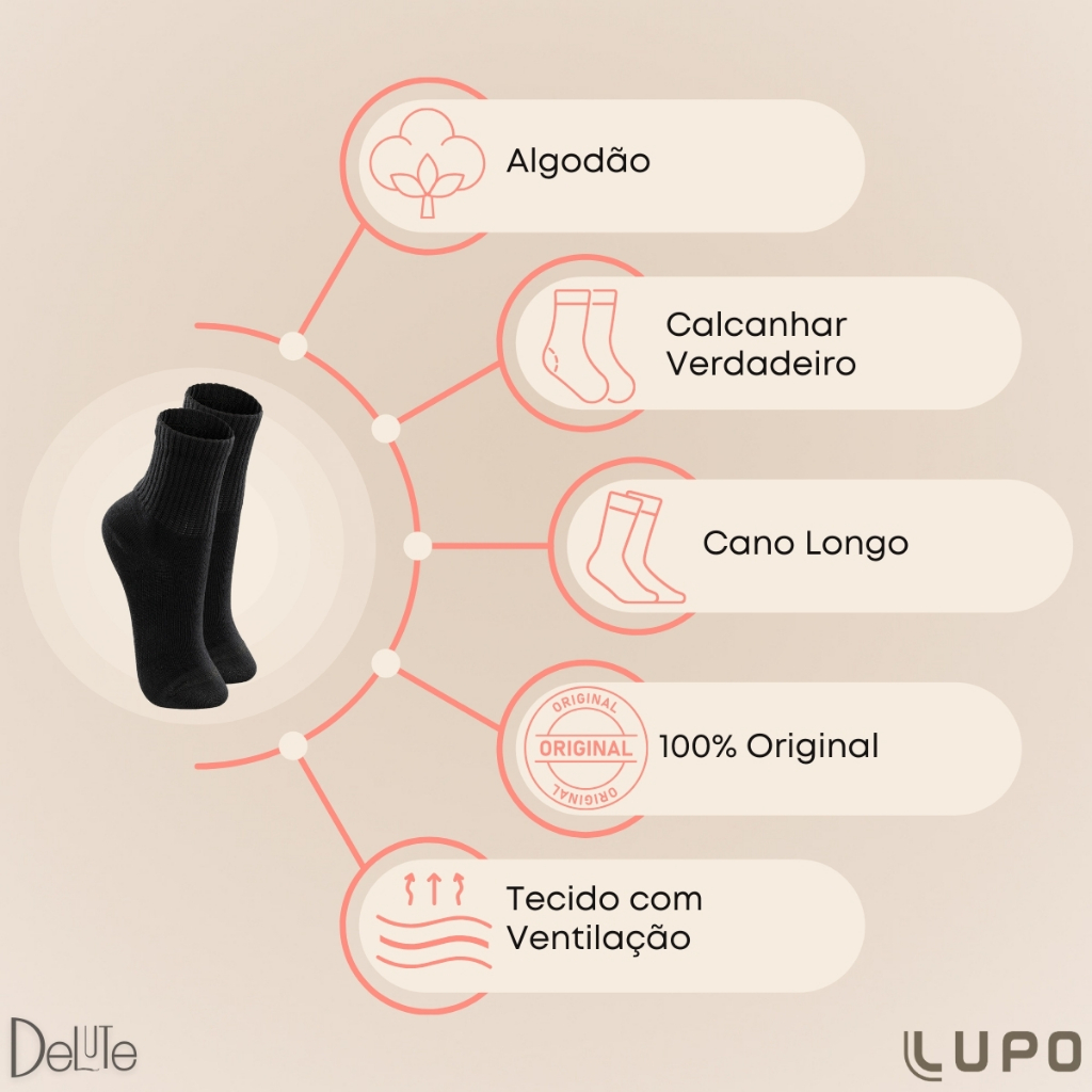 Kit De 10 Meia Lupo Kids Cano Médio Infantil Algodão Ref. 2727 - Original. Kit de 10 meias Lupo Sport, confeccionadas em algodão penteado super macio e confortável. Cano médio, adornadas por logotipo da marca punho canelado com calcanhar verdadeiro, com isso, evitando que a meia saia do lugar durante o uso. Possui tecnologia atoalhada, o que facilita a absorção do suor diminuindo o odor nos pés. Excelente custo benefício na compra do kit. O bico e o calcanhar foram reforçados para maior conforto e durabilidade, costuras firmes, interior respirável e macio. - Calcanhar verdadeiro. - Ajuste perfeito. - Maior conforto. - Punho soft. Tamanhos: M - (calçados 24 a 29) G - (calçados 30 a 35) Outras Cores: 74% Algodão, 24% Poliamida e 2% Outras Fibras Cinza: 65% Algodão, 24% Poliamida, 9% Poliéster e 2% Outras Fibras Descrição da Marca Lupo é uma das maiores e melhores fabricantes de moda íntima e meias. Em 1947 a empresa já era o maior fabricante de meias masculinas do Brasil, a partir de 1990 a Lupo ampliou sua linha de produtos, e hoje é uma das marcas mais conhecidas neste ramo.