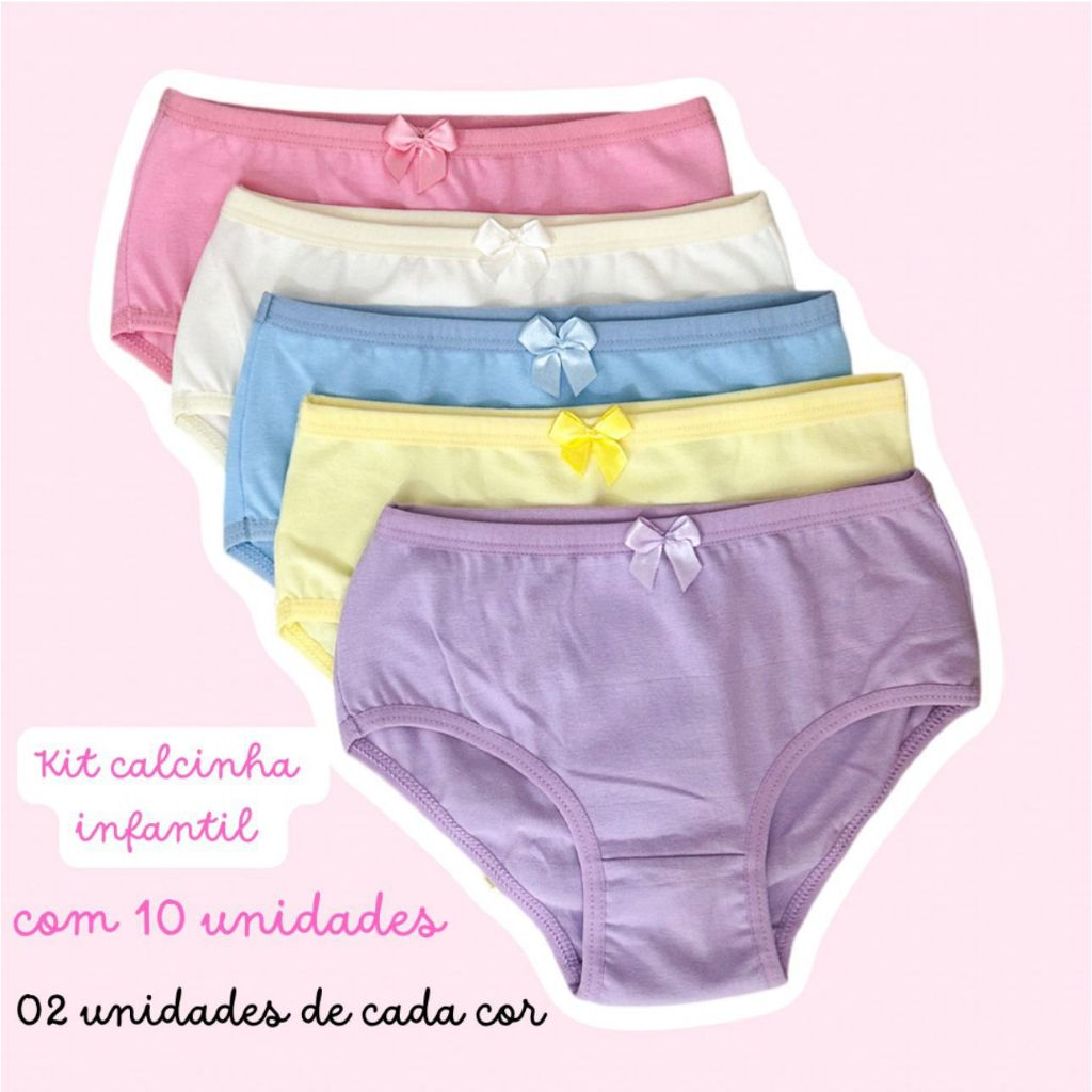 Kit com 10 peças de calcinhas femininas infantil de cotton de alta qualidade