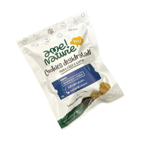 Mini Cookies 100% Natural Desidratados de Mandioca (Hipoalergênico) – 10 pacotes de 20 gramas cada| Para Cães e Gatos de Todas as Idades e Porte Proporcione ao seu pet um petisco saudável, saboroso e natural com os Mini Cookies Ame Nature! Feitos artesanalmente com ingredientes selecionados, são a escolha perfeita para cães e gatos, inclusive os mais sensíveis. Testado e aprovado por Nutróloga Veterinária Destaques do Produto: 100% Natural e Hipoalergênico – sem conservantes, corantes, aditivos ou glúten. Ingredientes Simples e Selecionados – mandioca in natura, aveia e banha suína. Desidratação Natural – sem adição de água, para conservar o frescor e o sabor. Tamanho Ideal – cookies mini de 2,5 cm de diâmetro, práticos para pets de todos os portes. Produção Artesanal – feito à mão com muito cuidado e qualidade. O que você recebe: 10 pacote com 20g cada = total 200gramas de Mini Cookies naturais, perfeitos para petiscar a qualquer hora do dia. Composição: Mandioca + Aveia + Banha Suína Sem glúten, sem conservantes, corantes ou aromatizantes artificiais. Benefícios: Petisco natural e saudável que auxilia na dieta equilibrada do seu pet. Hipoalergênico, ideal para animais com sensibilidades alimentares. Conservação por desidratação e embalagem laminada que garante frescor por mais tempo. Validade de ate 12 meses apos a data de fabricação Modo de Uso: Ofereça como petisco ou recompensa durante o dia. Armazene em local fresco, seco e ao abrigo da luz, mantendo o produto na embalagem original. Cuide do bem-estar e da felicidade do seu pet com o sabor e a qualidade dos Mini Cookies Ame Nature – o natural que seu amigo merece! 🐾🌿