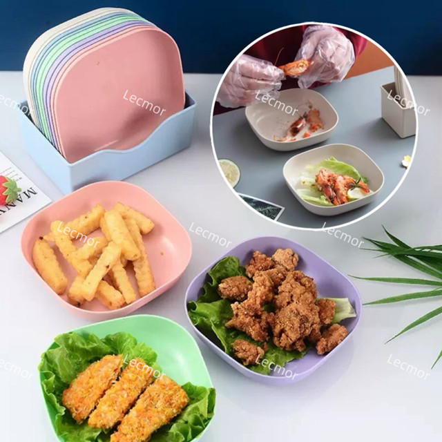 Kit com 10 Pratos Quadrados Fibra de Trigo Coloridos e 1 Porta Pratos para Petisco Molho Lanche