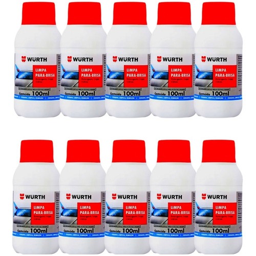 LIMPA PARA BRISA 100ML WURTH Kit Com 10 Unidades O LIMPA PARA BRISA, foi desenvolvido para facilitar a limpeza do para brisa nos veículos. Remove com facilidade manchas de óleo, gordura, insetos grudados, resíduos da maresia etc., dos vidros automotivos. Principais Vantagens: Melhora a visibilidade ao dirigir. Melhora o deslizamento das palhetas. Remove fuligem ,insetos, gordura e poeira. Pode ser aplicado em viseiras de capacetes, fachadas, box e vitrines. Segundo a revista Quatro Rodas: De todos os produtos testados pela revista 4 Rodas o da Wurth é o mais perfumado. E quando se esta na estrada por exemplo e uma carreta nos ultrapassa e joga óleo no vidro. este produto é ótimo pois desengordura e limpa completamente sem deixar manchas no parabrisa do carro. Cada frasco com 100 ml é recomendado colocar ele todo no reservatório de aguado veículo (parabrisa).