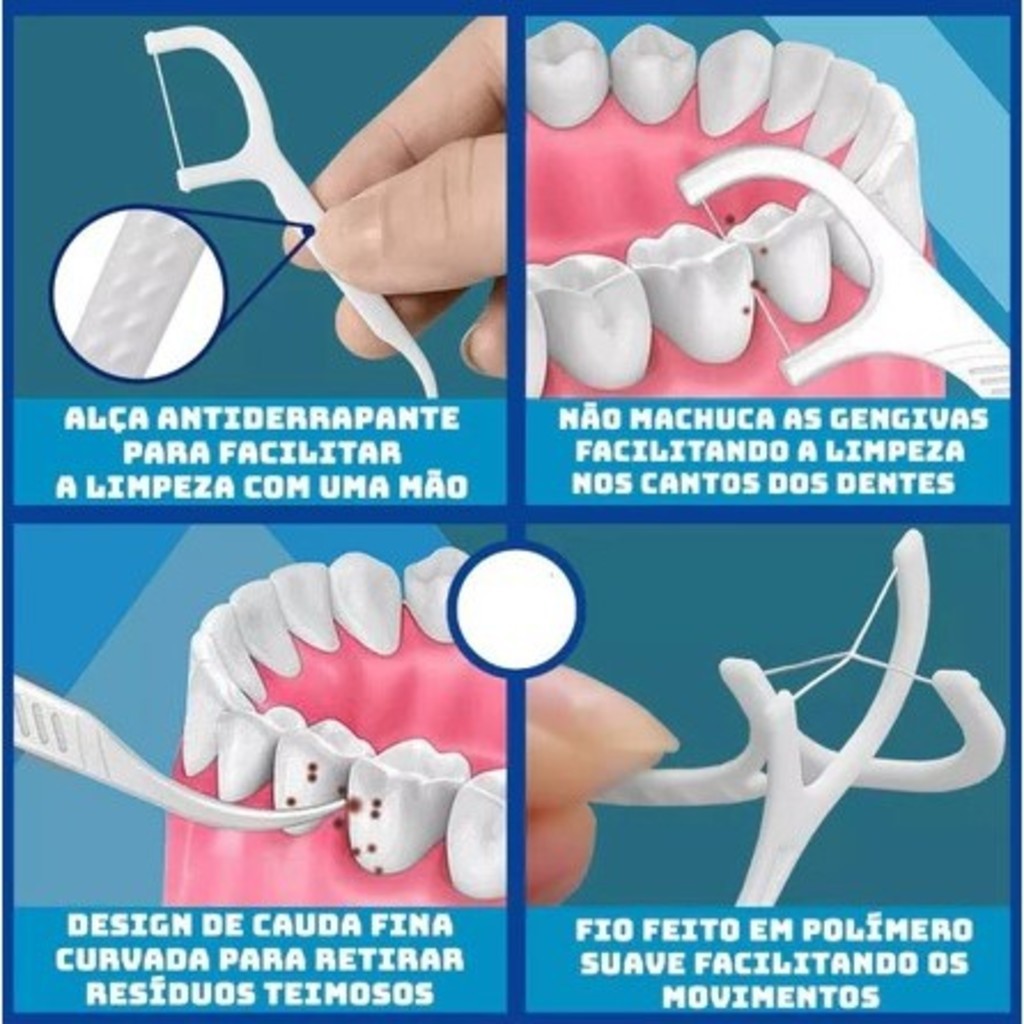 | Kit Com 100 Fio Dental de Arco Com Haste Flexível Pratico Para o Di... este produto | R$ 19,99 | 67% | 4.9/5 | — |