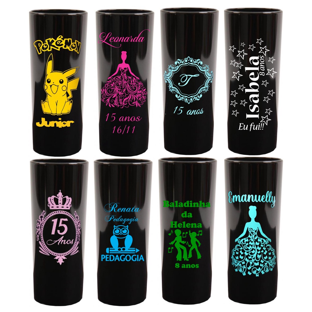 kit com 100 unidade já personalizada em uma cor de gravação e a mesma arte para todos os copos