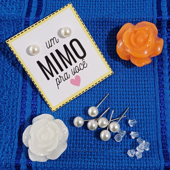 Kit Com 10UN/ 15UN/ 25UN/ 30UN PARES De Brinco De Pérola 6mm + Tarraxa + TAG De Mimo e Dia da MULHER