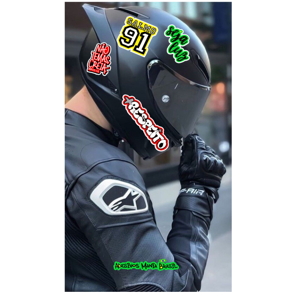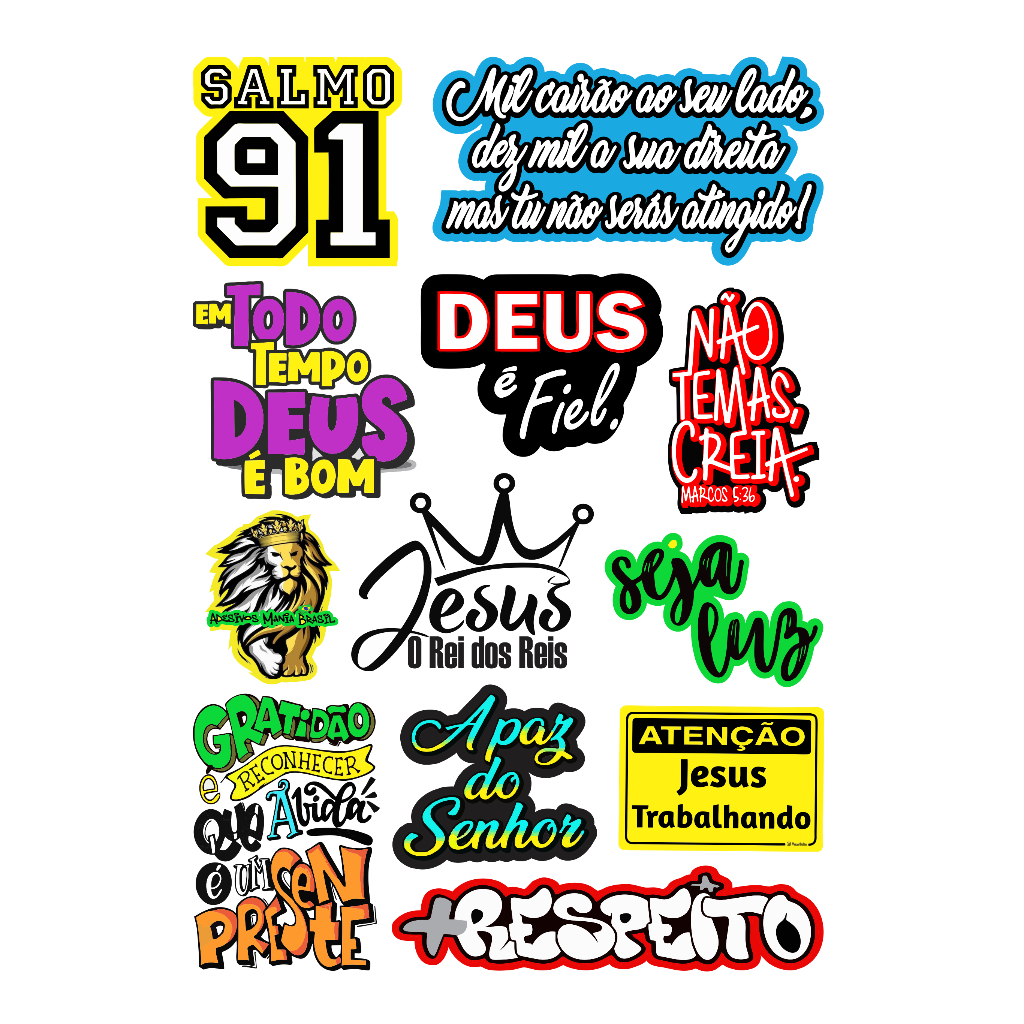 Kit Com 12 Adesivos Frase Religioso Cristão Para Moto Capacete Carro Bike