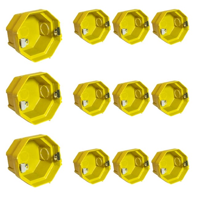 Kit Com 12 Caixas Sextavadas De Embutir Bet Plásticos 3x3 Amarela - Cx33103