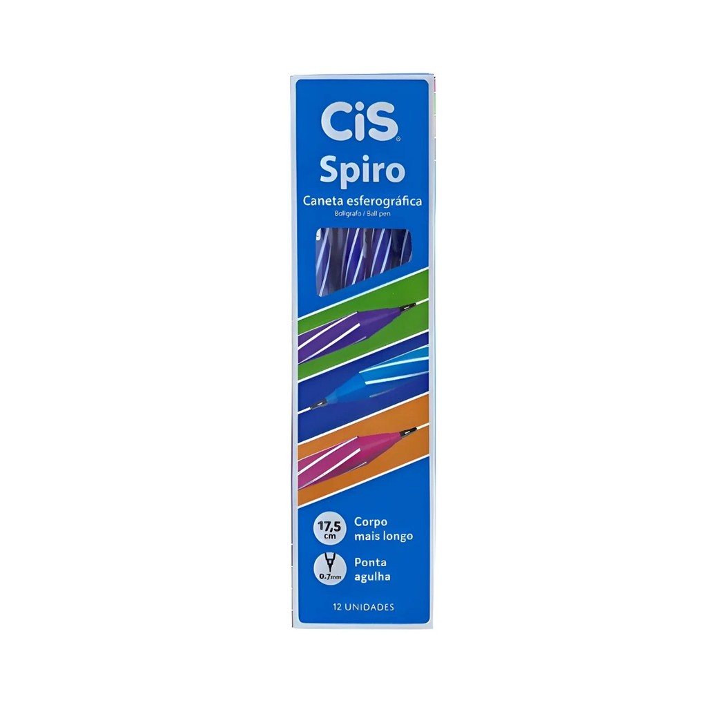 Kit com 12 canetas esferográficas CIS Spiro.Uma das canetas mais utilizadas por estudantes e escritórios, por seu custo benefício e qualidade. A caneta esferográfica Spiro possui um traço fino de 0.7 mm, perfeito para escrita precisa e detalhada.Possui corpo longo de 17,5cm em plástico, tampa ventilada com clip e ponta tipo agulha. Esfera em aço inoxidável 0.7 mm que permite uma escrita fluida e confortável. A tinta à base de óleo garante durabilidade e resistência, ideal para uso diário. A embalagem em caixa facilita o armazenamento e organização. Produto novo e de alta qualidade, não inclui estojo.