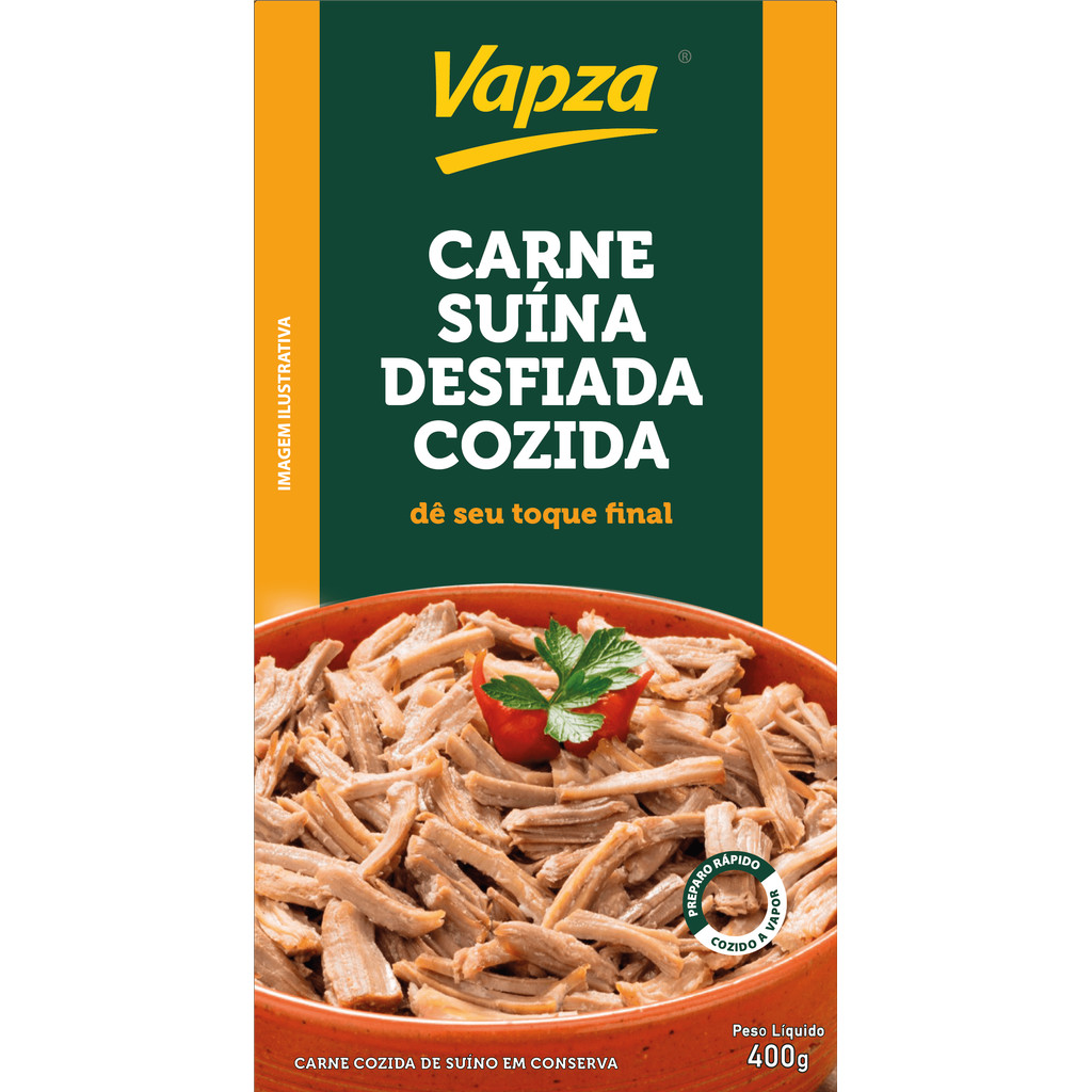 Preparada com o melhor corte da carne suína, a CARNE SUÍNA DESFIADA COZIDA VAPZA é um excelente aliado para quem ama cozinha descomplicada. Como a carne já vem desfiada e pronta, é possível preparar sanduíches, tortas, recheios e tudo que a criatividade permitir, com gostinho de quero mais.