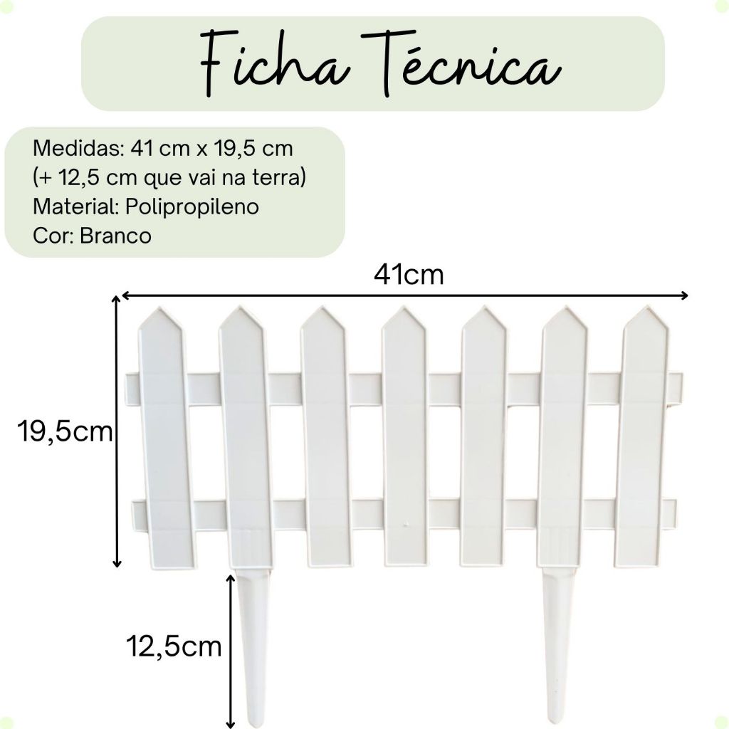 Kit com 12 Cercas Plásticas de Jardim Branca - Modelo Inglês.