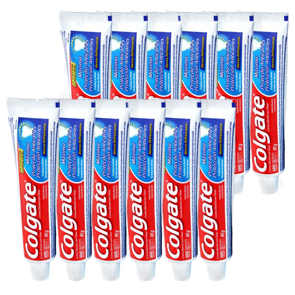 Kit com 12 Cremes Dentais Colgate Máxima Proteção Anticáries 90g