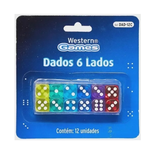 Kit com 12 Dados Dadinhos Coloridos Transparentes Western DAD-12C para Jogos de Tabuleiro ou Cartas