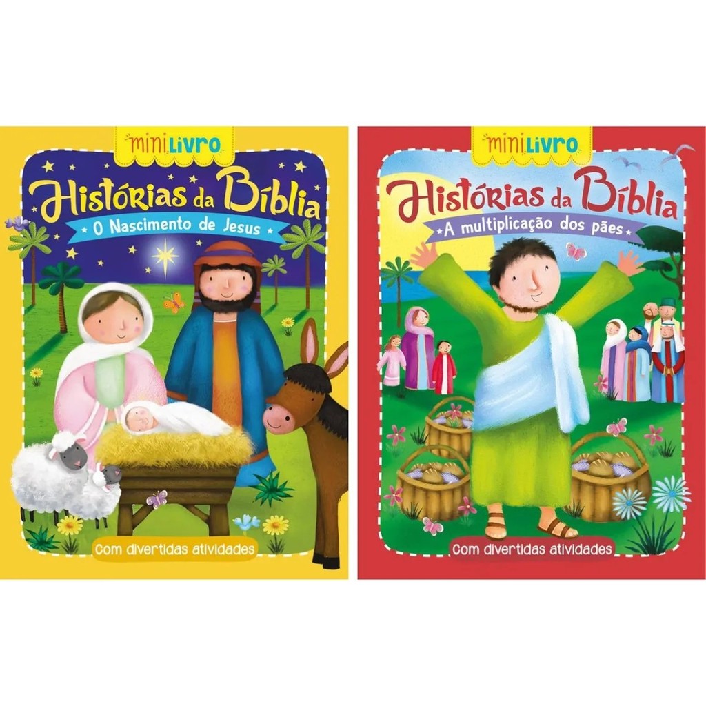 Kit Com 12 Mini Livros - Coleção Histórias Da Bíblia Com Atividades