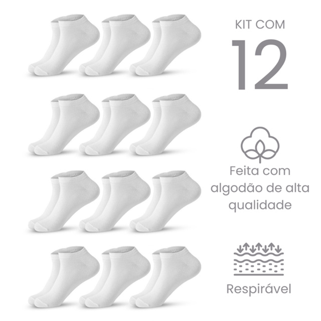 | Kit com 12 Pares de Meia Soquete Unissex Meia Cano Curto este produto | R$ 49,90 | — | 4.8/5 | — |