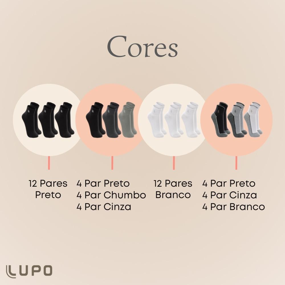 Kit Com 12 Pares Meias Unissex Lupo Sport Esportiva Cano Curto Plus Size Até O 48