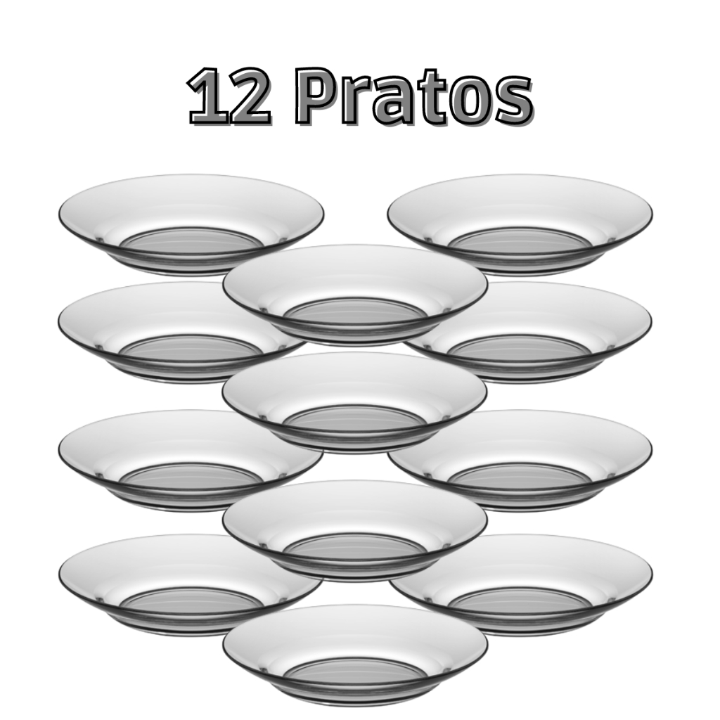 Kit com 12 Pratos Fundos de Vidro 22cm – Design Liso, Moderno – Resistente, Refeições Diária