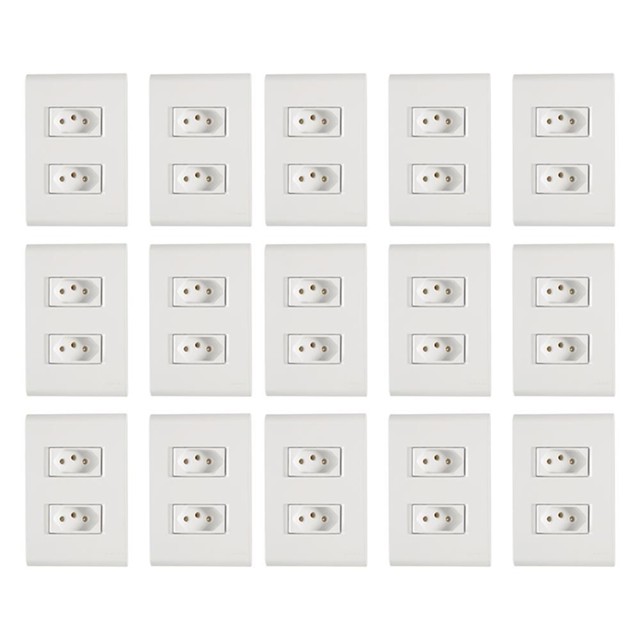 Kit com 15 Tomadas Tramontina com 2 Tomadas Liz 2 Pinos + Terra 10A/250V Branco