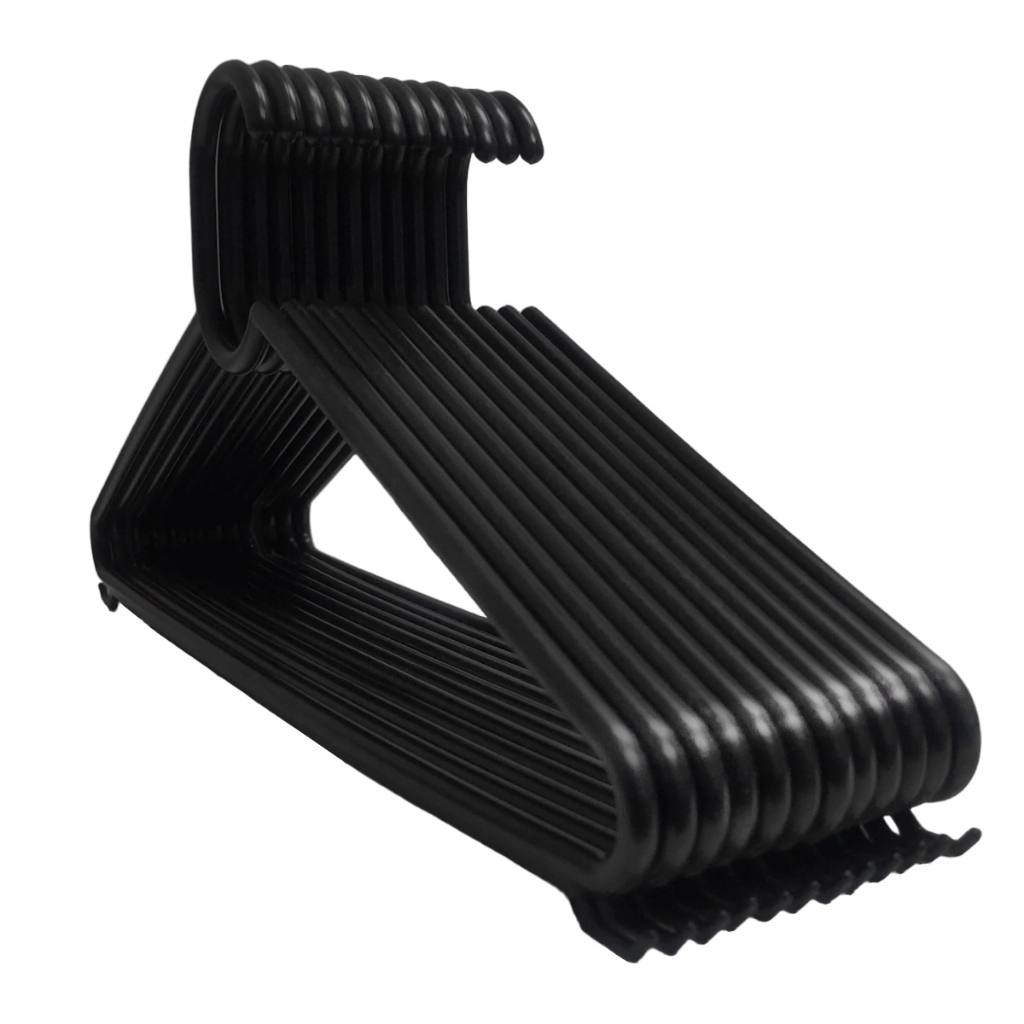 KIT COM 150 CABIDES REFORÇADOS ANTI-DESLIZANTES EM POLIPROPILENO COM FORMATO ARREDONDADO. Características: - Altura: 17 cm - Comprimento: 37 cm - Espessura: 07 mm (0,7 cm) - Cor: Preto Nossos cabides foram projetados após um longo período de pesquisas e análise com nossos clientes sendo um modelo mais resistente e com uma espessura maior diferenciando dos demais concorrentes e trazendo mais rigidez e robustez estrutural. Os cabides possuem formato arredondado e liso não deixando marcas na roupa e prolongando assim a vida útil das roupas. Modelo exclusivo próprio para atender desde o atacadista, lavanderias, Lojas de Roupas e até o usuário mais exigente. Seu tamanho é compatível com todos os guarda-roupas, possuindo um ótimo acabamento, trazendo a funcionalidade e a simplicidade ao tirar e colocar roupas, além de contar com alças para pendurar peças delicadas. O modelo foi projetado para todas suas peças de roupas e acessórios, ele evita que as peças deslizem e se danifique. Com material resistente e com reforço estrutural na parte inferior do cabide seu design com curvas delicadas e mantendo uma aparência simples, funcional, moderna e contemporânea.
