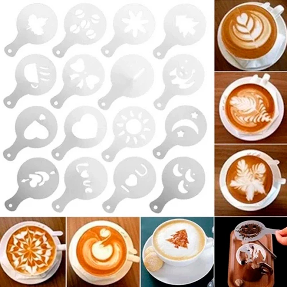 Kit com 16 Moldes Stencil Barista Café Expresso Polvilhar Desenhos no Café