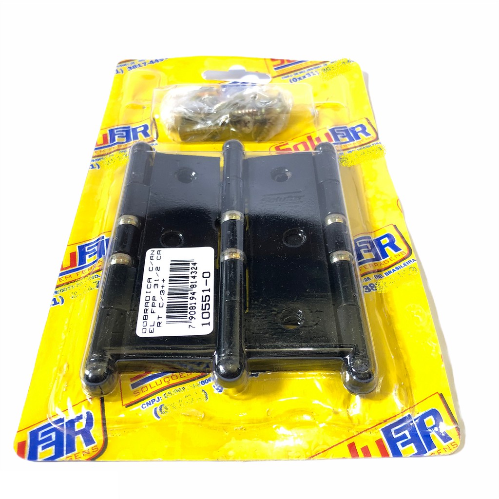 Material: Aço e Anel de latão. Acabamento: Ferro Pintado Preto Perfil: Retangular. Medida em Polegada: 3½. Dimensões: 88x56x1,50mm. Indicação de uso: Portas de Madeira e Portões em Geral. Conteúdo da embalagem: 18 dobradiças e 108 parafusos Clique em "comprar agora". Produtos com nota fiscal, garantia de fábrica, envios agilizados e ótima qualidade. Você não pode perder essa oportunidade.