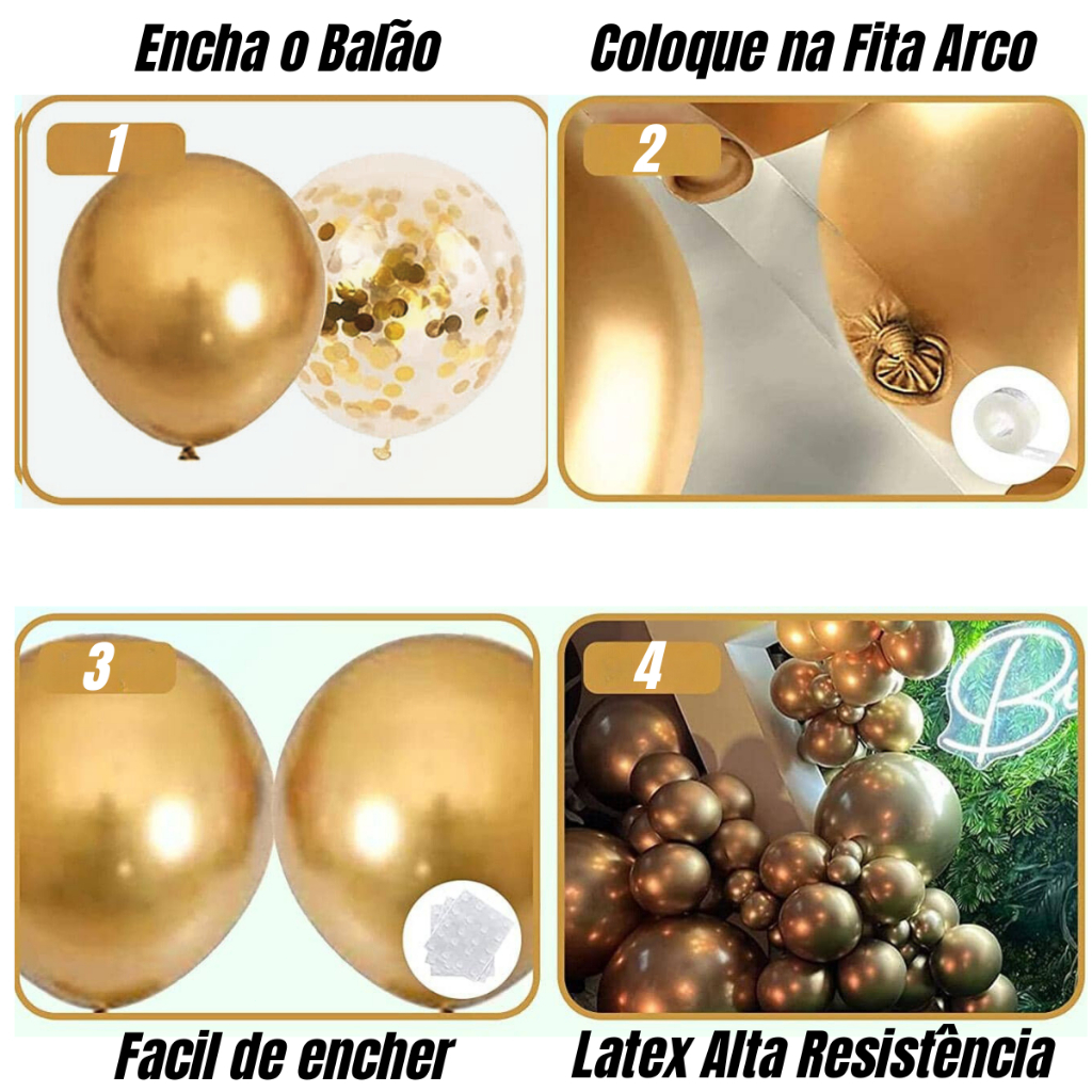 🍀🍀 Bem-vindo(a) à loja oficial 【mulbscomercio】🍀🍀 👉Somos um vendedor brasileiro local e todos os itens estão em estoque. 🛒Os pedidos serão enviados diariamente às 11h30 (em até 24 horas). 🎁Siga nossa loja e adicione itens ao seu carrinho para não perder nenhuma promoção. 👩💼👨💼Em caso de dúvidas ou problemas, entre em contato conosco. 📃Detalhes do Produto: 1. Quantidade: 185 unidades 2. Cores: Branco, Amarelo, Marrom 3. Tamanhos: 45 cm (5 unidades) + Dourado Grande 30 cm (5 unidades) + 25 cm (44 unidades) + 12 cm (96 unidades) + 2 fitas. 4. Características do Produto: - Dourado Liso/Cromo - Material Látex - Linha Profissional - Brilhante e Reluzente - Cores Vibrantes - A tinta não borra 🎈Crie uma Cor de Cor 1. Não há branco falso ou substituto para o branco. 2. Os brancos que usamos são para o branco puro. 3. Diferentes tons de branco funcionam perfeitamente. 4. Fixe o branco na parede.