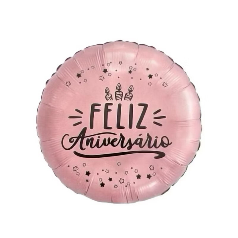 Kit com 2/3/4/5 Balão Metalizado Feliz Aniversário Rosé Prata Decoração Enfeite Festa