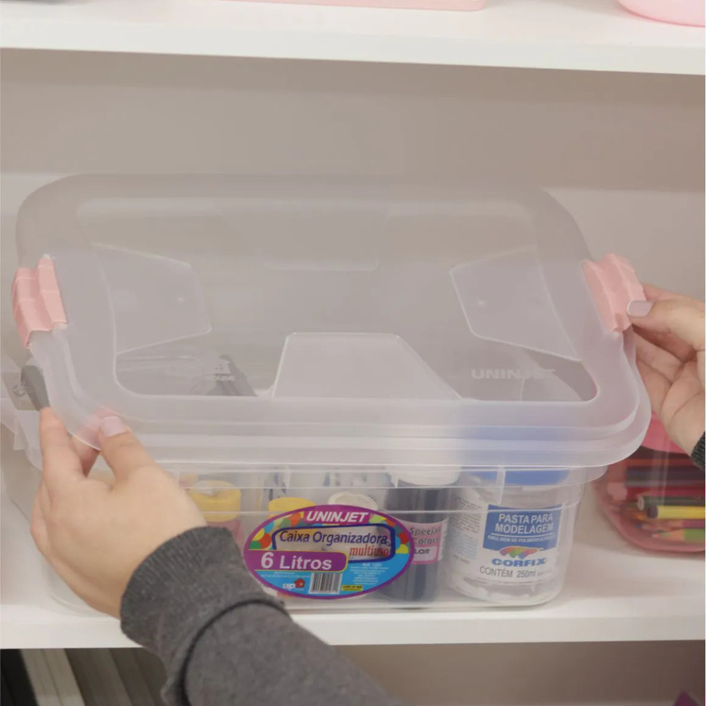 Kit com 2, 3, 4, 5 e 6 Caixa Organizadora Transparente 6 Litros Com tampa e Travas