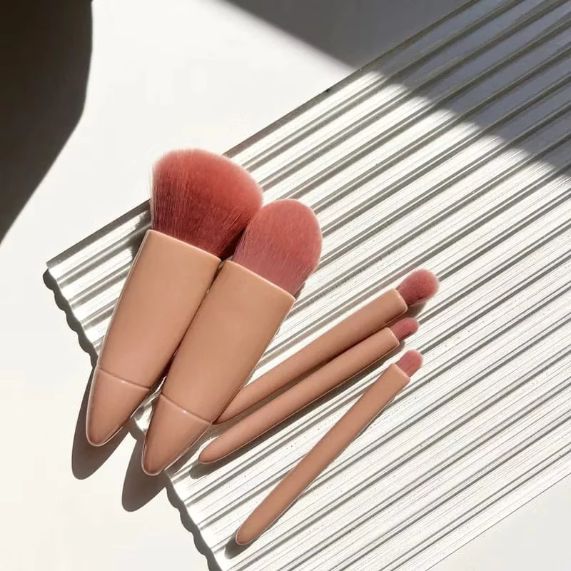 Kit com 2/4/6/8 Mini Espelho De Maquiagem Portátil Com 5 Pcs Pincéis De Maquiagem Lupa Mão Segurar Bolso