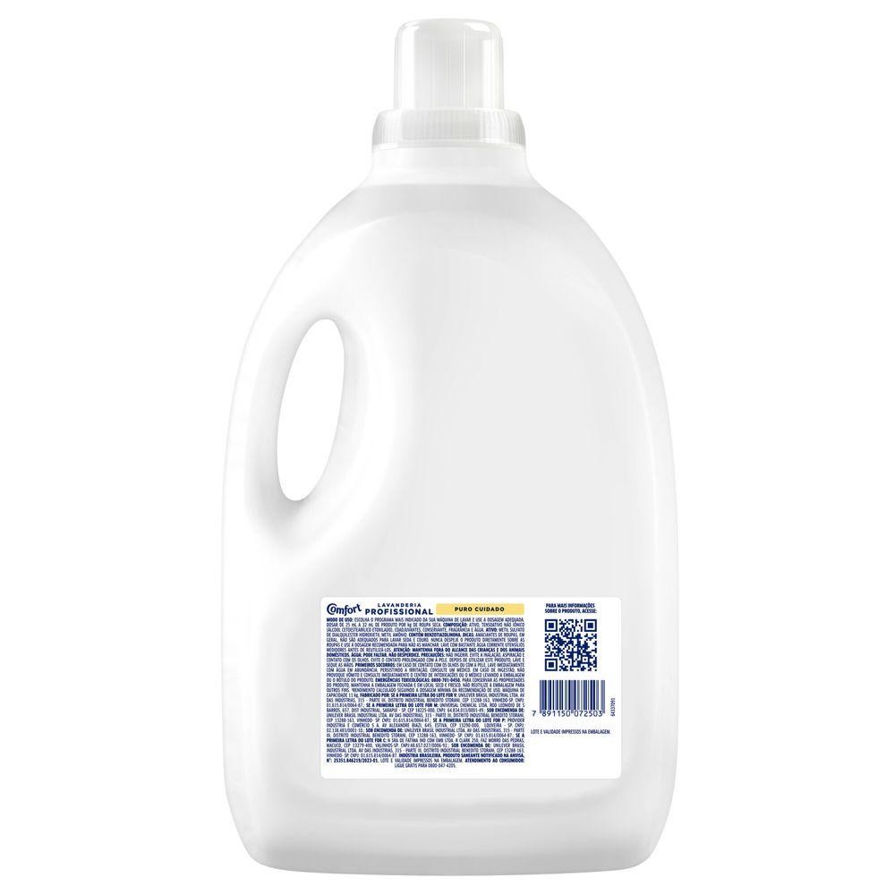 O Kit contém: 2 Amaciantes Diluído Comfort Profissional Puro Cuidado com 5L cada. • Rende 500 kg de roupas macias. • Hipoalergênico: gentil com a sua pele. • Ideal para roupas de pessoas com peles delicadas. • Deixam as peças mais fáceis de passar. • Gentil com a pele. • Perfume suave. Comfort Profissional Puro Cuidado 5 L foi desenvolvido com fórmula extra suave e é seguro para as roupas de pessoas com pele delicada. A tecnologia, que marca a qualidade de Comfort, garante maciez para as roupas, deixando-as mais leves e confortáveis de usar. Com o toque suave, as peças ficam mais fáceis de passar, reduzindo o tempo, energia e mão de obra do processo de passadoria das roupas. Cuidando das peças, Comfort Profissional Puro Cuidado 5 L deixa os tecidos com perfume delicado e toque macio. Comfort Profissional Puro Cuidado 5 L ainda conta com um ótimo custo-benefício: uma vez ajustada a dosagem de acordo com as recomendações de uso, a embalagem super econômica de 5 litros rende até 500 quilos de roupas maciais e tratadas. Além de contar com a qualidade reconhecida do amaciante Comfort, Puro Cuidado 5 L foi desenvolvido para garantir a segurança máxima dos usuários: é dermatologicamente testado e hipoalergênico, ou seja, sua formulação não causa nenhuma irritação à pele. Conheça o restante da linha Profissional para lavanderias, composta pelo sabão líquido concentrado OMO Lavanderia 10 L, amaciante concentrado Comfort Lavanderia 10 L, OMO Lavanderia Perfect White Sem Perfume 3,5 kg, entre outros produtos de qualidade imbatível, desenvolvidos sob medida para a sua necessidade.