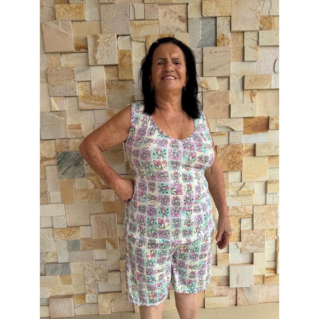 Kit com 2 Baby Doll Estampado Plus Size Blusa sem Bojo e Short Pijama de Dormir Confortável Verão