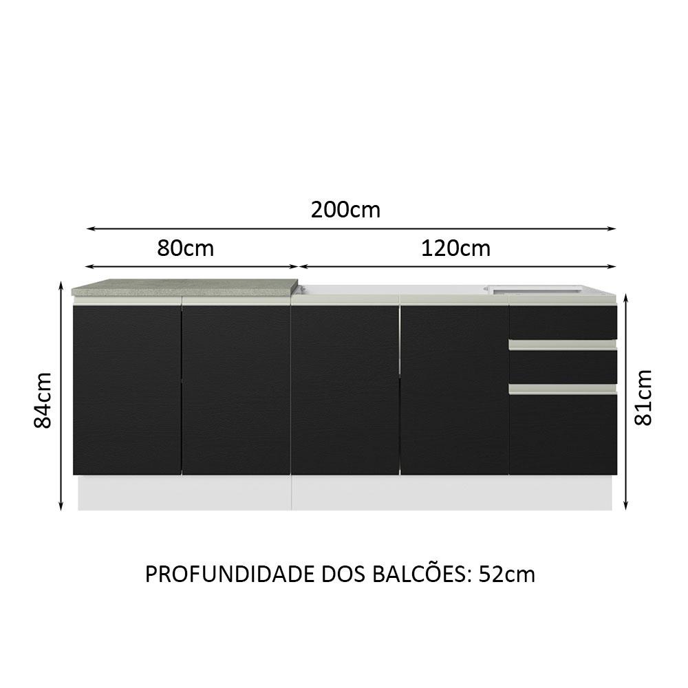 Kit com 2 Balcões de Cozinha Madesa Glamy 4 Portas 3 Gavetas (Sem Tampo e Pia) - Branco/Preto