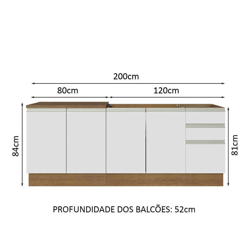 Kit com 2 Balcões de Cozinha Madesa Glamy 4 Portas 3 Gavetas (Sem Tampo e Pia) - Rustic/Branco