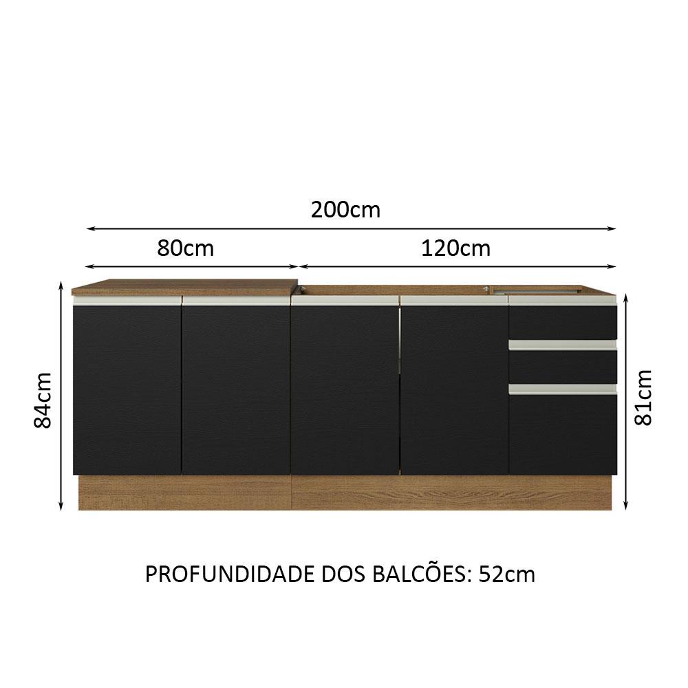 Kit com 2 Balcões de Cozinha Madesa Glamy 4 Portas 3 Gavetas (Sem Tampo e Pia) - Rustic/Preto