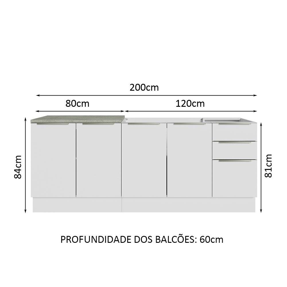 Kit com 2 Balcões de Cozinha Madesa Lux 4 Portas 3 Gavetas (Sem Tampo e Pia) Branco/Branco Veludo
