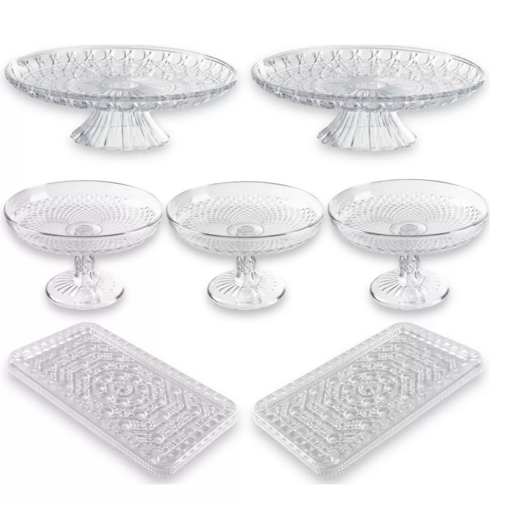 kit com 2 Boleira 23cm + 3 Doceira + 2 Bandeja Retangular, Kit acrílico , Suporte para doces, Porta doces