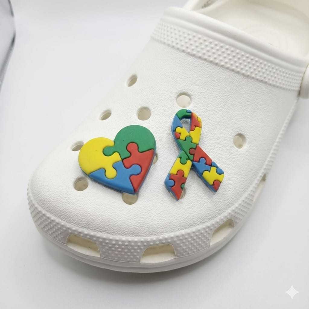 *Kit 2 Botons Autismo desenvolvido especialmente para personalizar sandálias e calçados com furos. O kit contém 2 peças: *1 Boton formato Coração *1Boton formato laço Ambos com estampa colorida inspirada na tradicional puzzle símbolo do Autismo Produzido em material flexível resistente esses botons se encaixam perfeitamente nos furos do calçado garantindo firmeza durante o uso e um visual cheio de significado