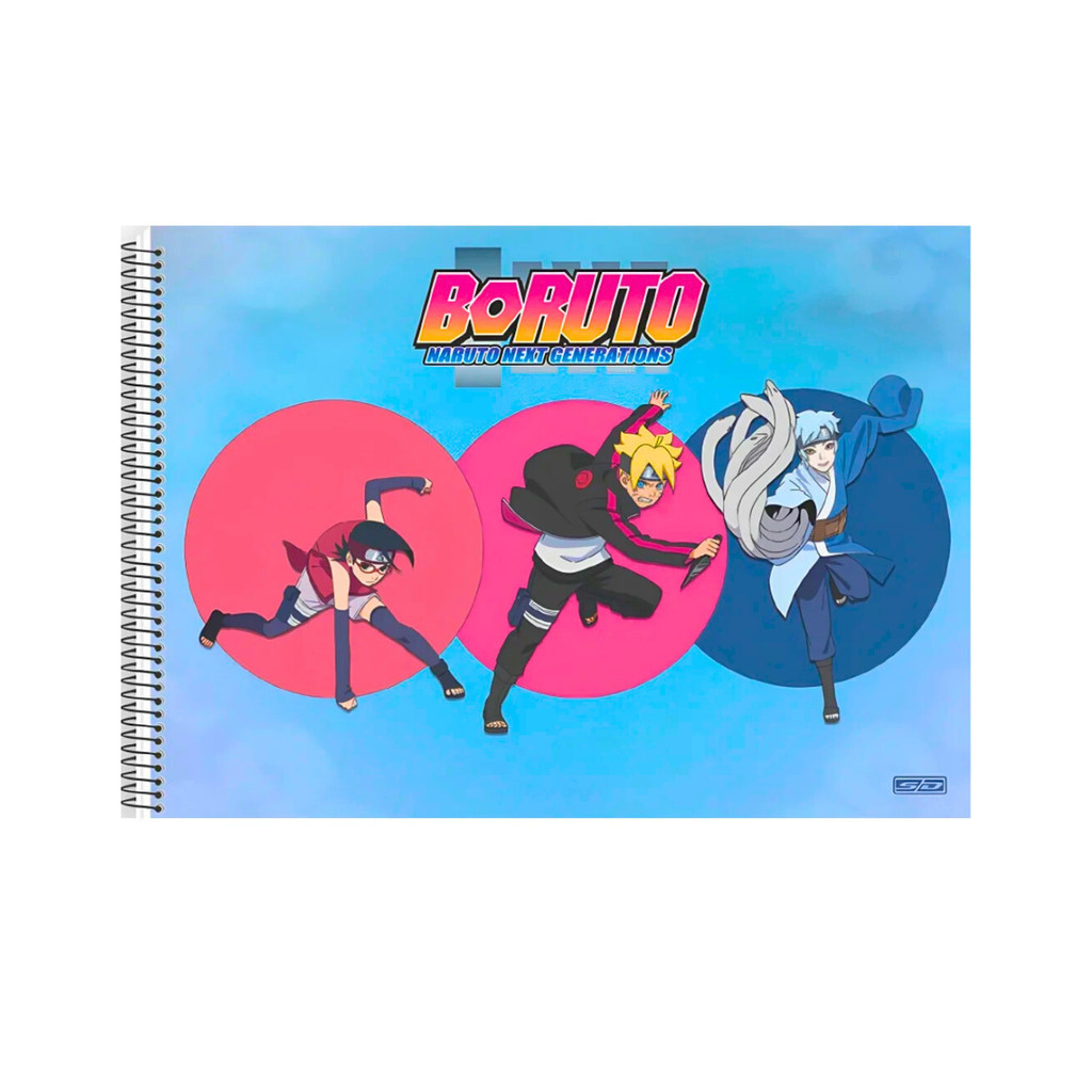 Kit Com 2 Cadernos De Desenho 60 Folhas Boruto Naruto Next Generentions - São Domingos