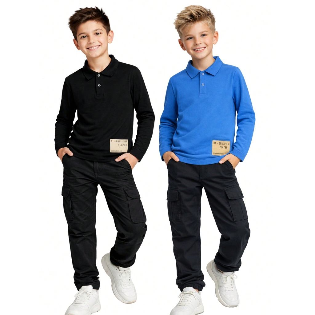 Kit Com 2 Camisas Gola Polo Menino De Manga Longa 100% Algodão Premium – Inverno