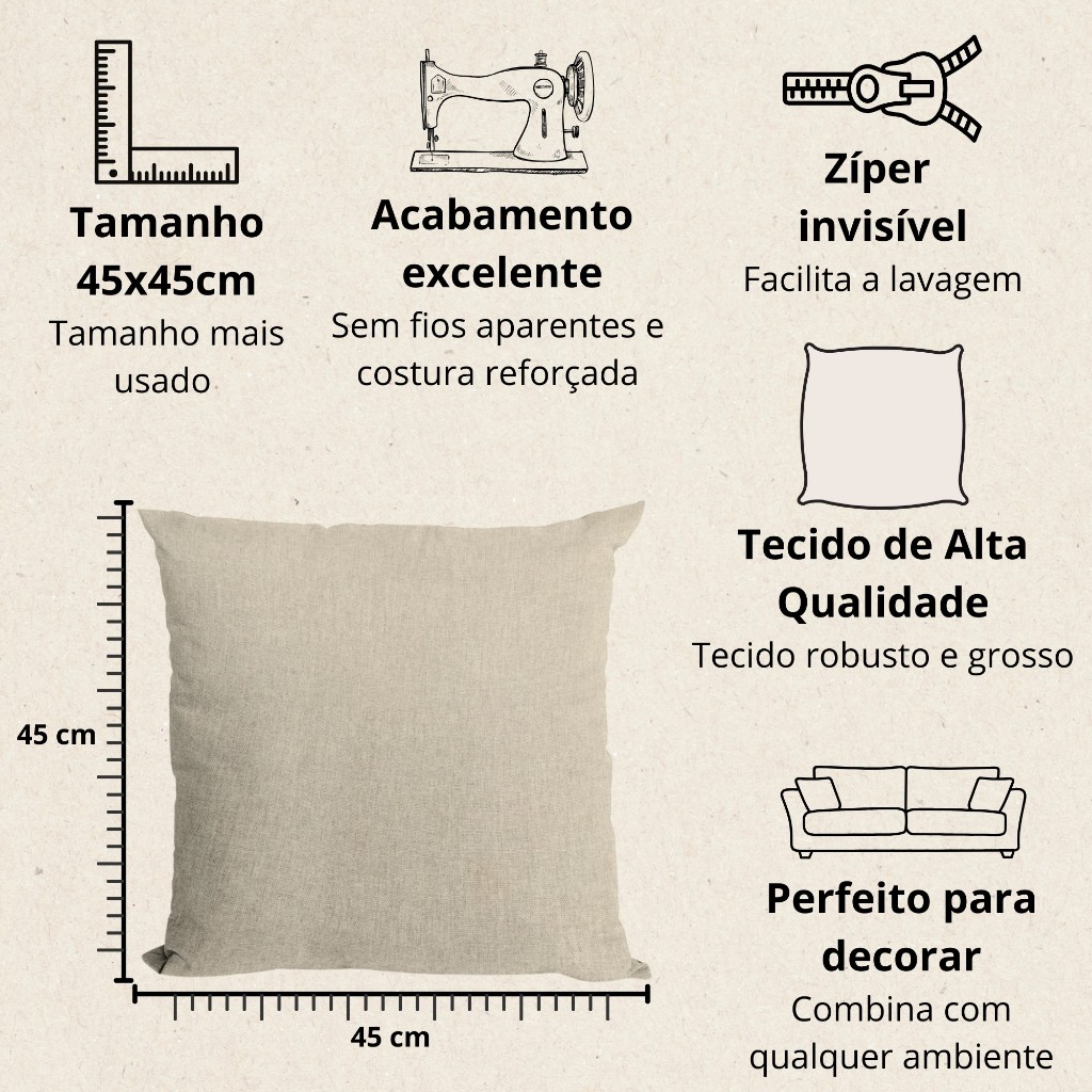 KIT 2 CAPAS DE ALMOFADA ELEGANTE EFEITO LINHO As almofadas modernas, normalmente são uma das principais peças para uma decoração cheia de estilo e harmônica, para receber convidados ou para descansar com elas. Deixe sua sala, escritório, quarto e diversos outros ambientes decorados com as nossas capas de almofada que proporciona máximo conforto e beleza para sua cama, sofá ou qualquer ambiente. Características: Capa de almofada estampada Comprimento: 45 cm Largura: 45 cm Especificações: Não acompanha enchimento Mesma estampa/cor em ambos os lados Estampas com cores vivas Zíper Invisível Ótimo acabamento Fácil de lavar e de colocar o refil Ótimo custo benéfico Observações: NÃO acompanha enchimento