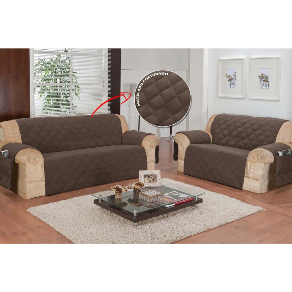 Kit com 2 capas de sofá para 2 e 3 lugares - com porta objeto