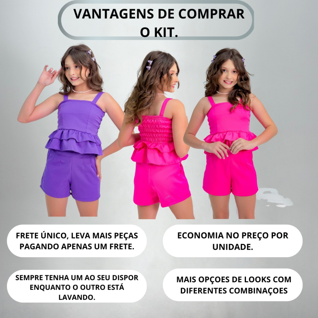 ✨ Kit com 2 Conjuntos Infantil Batinha Dois Babados – Tecido Alfaiataria Esse kit é perfeito para deixar as meninas ainda mais estilosas e delicadas! São 2 conjuntos completos, compostos por batinha com dois babados e short combinando, trazendo um visual moderno e cheio de charme. Confeccionados em tecido alfaiataria, os conjuntos possuem ótimo caimento, estrutura leve e toque macio. O tecido é confortável, não é transparente e proporciona um acabamento mais arrumadinho, ideal tanto para o dia a dia quanto para ocasiões especiais. 💖 Ideal para passeios, festas, aniversários e momentos especiais. 🎀 Ótima opção para presentear. Garanta já esse kit incrível com excelente custo-benefício!
