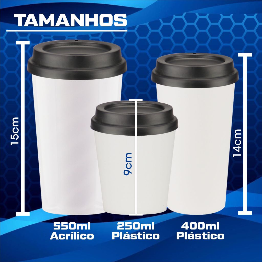 ATENÇÃO NA DESCRIÇÃO Após a compra, envie IMEDIATAMENTE os modelos escolhidos pelo Chat. Podem ser escolhidos qualquer arte dos copos da nossa loja. Para comprar com sua arte, ela deverá ser enviada pronta, de preferência com fundo branco (jpeg) ou transparente (png). Se a arte não for enviada pelo cliente, nós enviaremos o pedido com estampas aleatórias, pois após a nota gerada pelo sistema, não é possível o pedido ser cancelado, e não entramos em contato com o cliente para solicitar a arte, para agilizarmos a produção. Qualquer dúvida, pergunte antes de efetuar a compra. Antes de efetuar a compra, envie a arte pelo chat para vermos se está na qualidade necessária para produção. Temos uma grande variedade de cores de tampas para combinar com sua arte. Consulte disponibilidade nos estoque antes de efetuar o pedido. Copo com Tampa estilo Bucks nas seguintes opções: ✓ Copo acrílico 550ml: Material do copo: Acrílico PS. NÃO FLEXÍVEL! Material da tampa: Plástico Flexível para melhor vedação, evitando vazamentos. ✓Copo plástico ECO 250ml: Material do copo: Plástico PP. FLEXÍVEL! Material da tampa: Plástico Flexível para melhor vedação, evitando vazamentos. ✓ Copo plástico ECO 400ml: Material do copo: Plástico PP. FLEXÍVEL! Material da tampa: Plástico Flexível para melhor vedação, evitando vazamentos. Os tamanhos, altura e largura de cada capacidade estão nas imagens do anúncio. A impressão do copo é feita por transfer (NÃO É ADESIVO) Super resistente à lavagem e ao calor. Estampa de alta qualidade, não desbota e não sai ao lavar. Cuidados com seu copo: Lavar somente com o lado amarelo da esponja para não riscar a estampa. Não levar à lava-louças. Não congelar. Os copos de plástico podem ir ao microondas, o de acrílico não. Plástico livre de BPA. Nossos copos são brindes perfeitos para eventos corporativos, ações promocionais, campanhas de fidelização, lembranças para colaboradores e clientes e para seu próprio uso diariamente. Agradecemos sua compra!