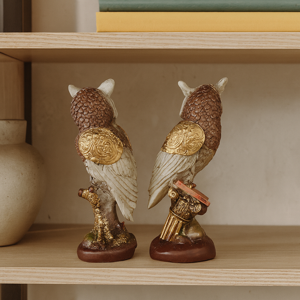 Kit Com 2 Corujas Decorativa Em Gesso Sala Escritorio Enfeite Bancada Casal Corujas Da Sorte Rustico