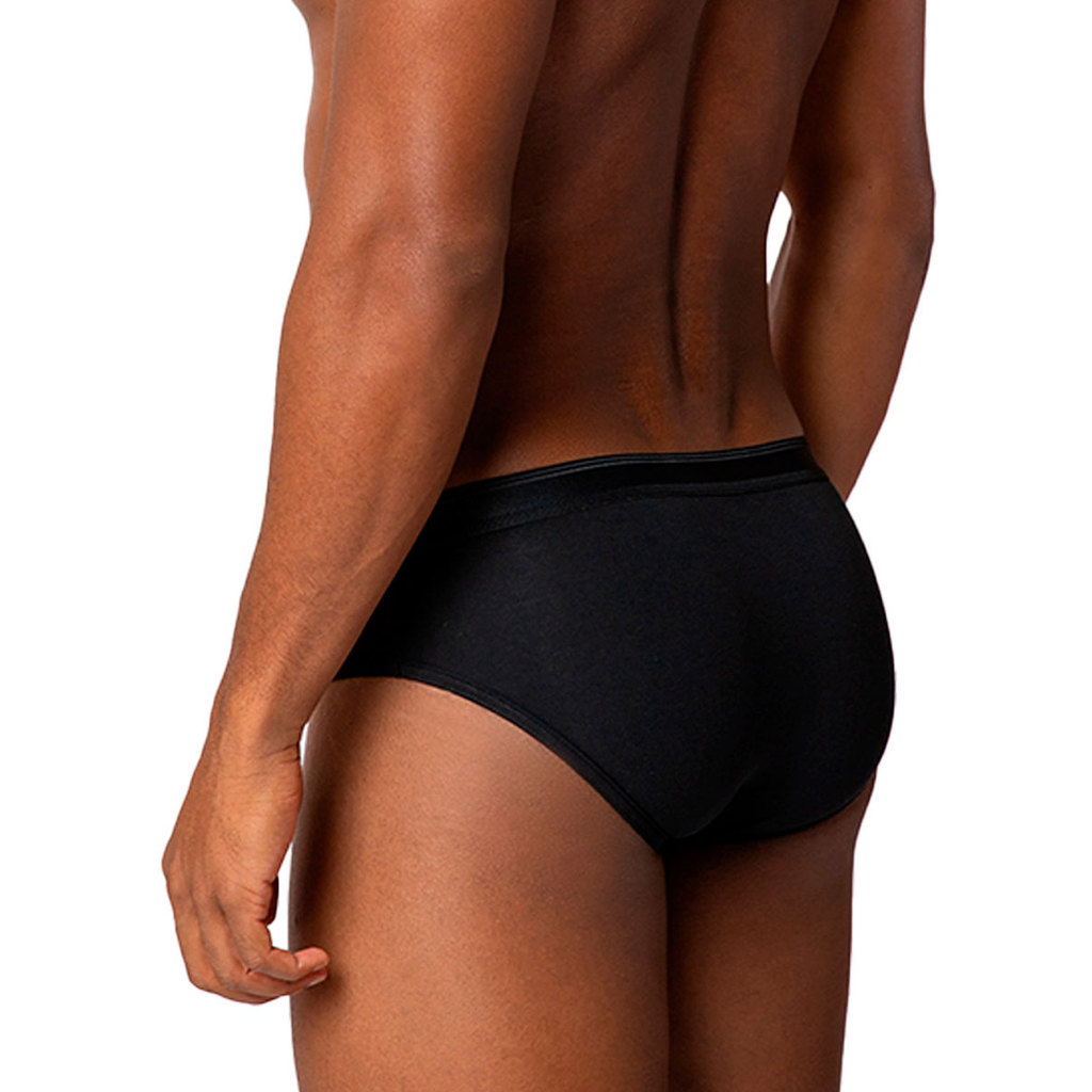 Características: Cueca Masculina Slip Confeccionado em algodão com elastano Leve, macio e confortável Desenvolvido especialmente para quem não abre mão do conforto do algodão Modelagem slip com acabamento de costura entre pernas, com galão da própria malha e elástico embutido Possui formato anatômico, sem costuras laterais que proporcionam ajuste e toque perfeito ao corpo Cós com elástico 30mm com logo localizado em marca d'água, monocromático e minimalista, confortável Cores: Preto: Todas preto Branco: Todas branco Marinho: Todas marinho Composição: 95% Algodão e 05% Elastano