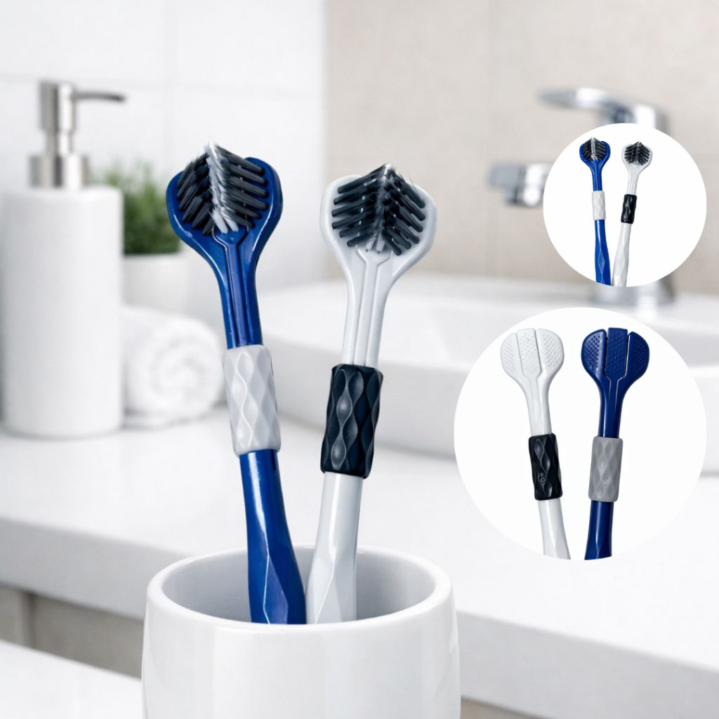Kit Com 2 Escovas De Dentes 3 Lados - Cerdas Macias Limpeza Rápida e Completa