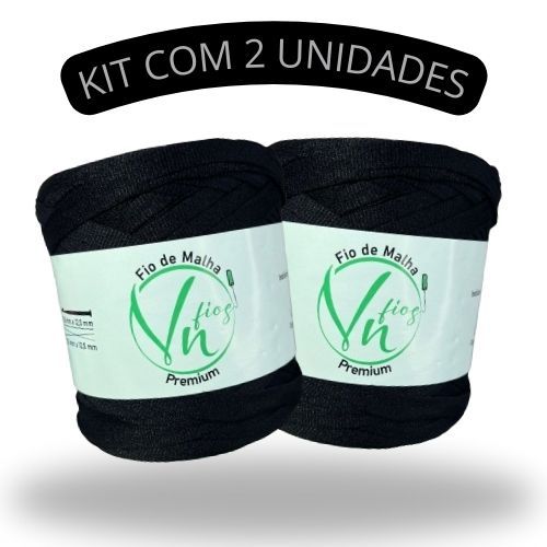 KIT COM 2 FIOS DE MALHA PREMIUM: Preto 25mm VN Fios 140m Tensionado para Crochê - Artesanato