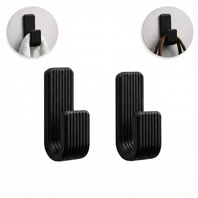 Kit Com 2 Ganchos Pretos Suporte Resistente Com Fita Dupla Face Para Toalhas Roupas Acessórios