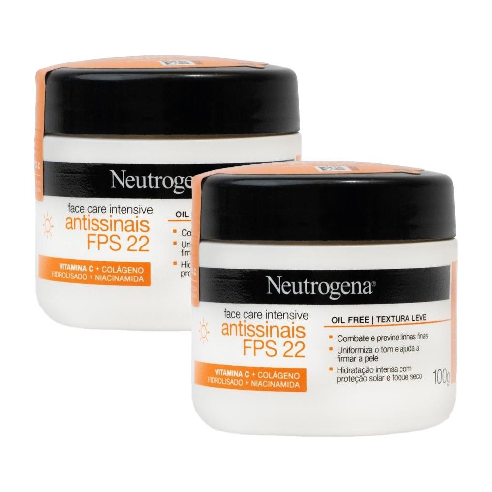 Kit com 2 Hidratante Facial Neutrogena Face Care Intensive Antissinais FPS22 100g
